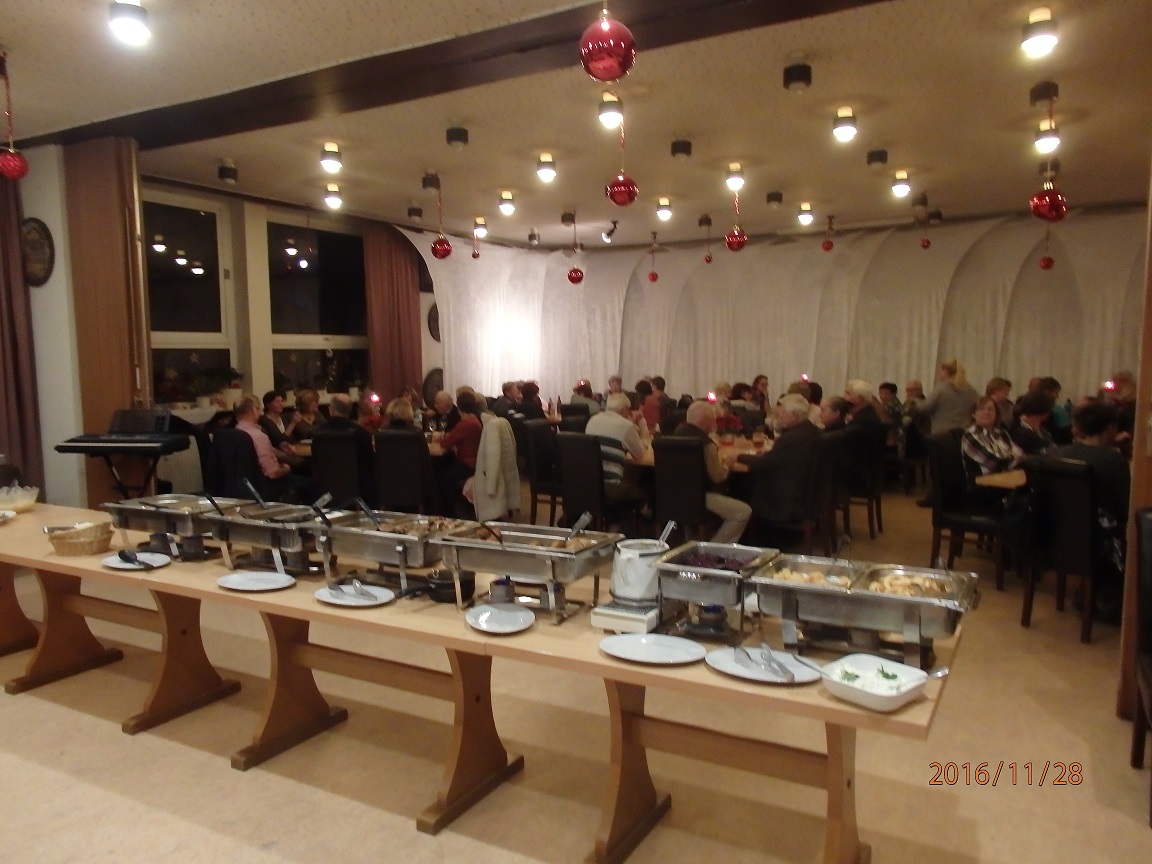 Am Montag, 28.11.2016 fand im Gasthof Zum Schützenhaus in der Kapellenstraße 31 ab 18 Uhr die Weihnachtsfeier der Turnabteilung der SpVgg Greuther Fürth e.V. statt. Rund 60 Mitglieder der Abteilung konnten sich am leckeren Buffet satt Essen und auch ein paar unterhaltsame Gedichte und Geschichten wurden vorgetragen. Natürlich durften auch ein paar Weihnachtlieder nicht fehlen, die unter Keyboard-Begleitung von den Mitgliedern zum Besten gegeben wurden.